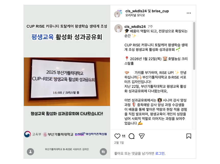 [부산가톨릭대학교] CUP RISE 평생교육 활성화 성과공유회 참가후기 https://www.instagram.com/reel/DUPi_gqj33-/?utm_source=ig_web_copy_link&igsh=MzRlODBiNW