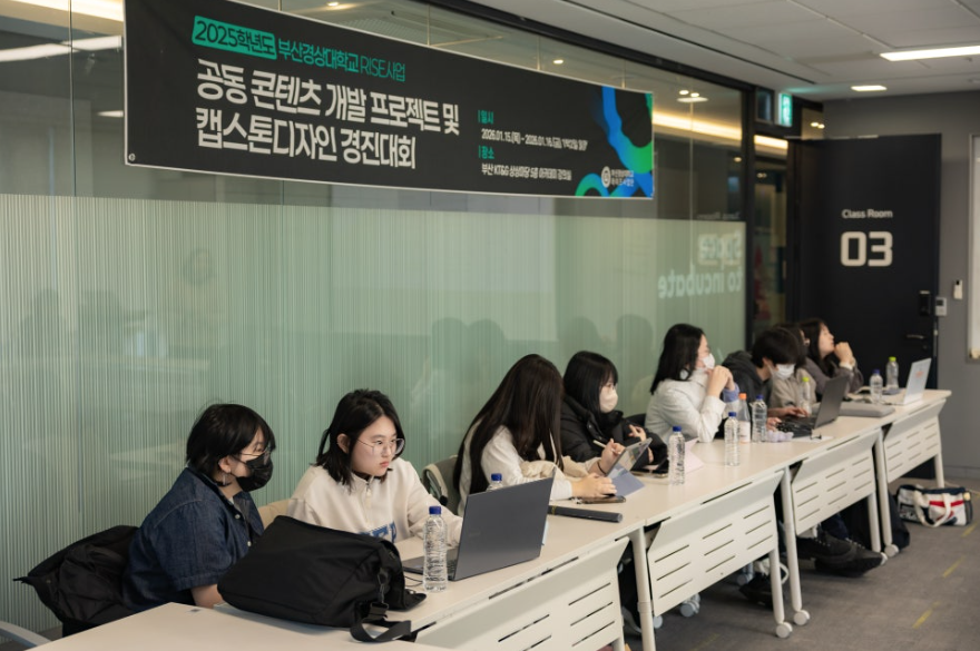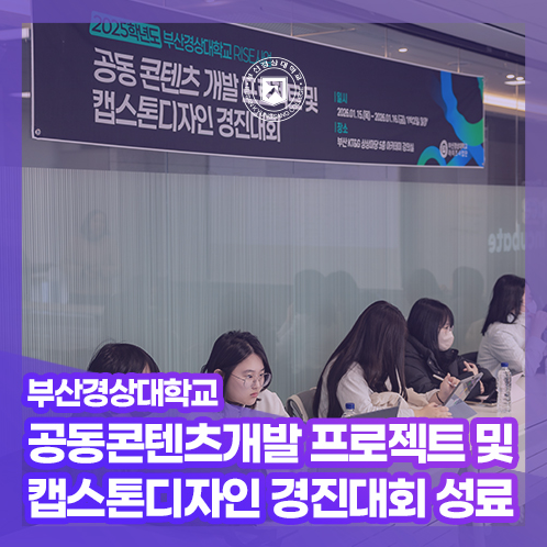 부산경상대학교(총장 한백용) RISE사업단(단장 이영주)은 지난 1월 15일(목)부터 16일(금)까지 부산 서면 KT&G 상상마당에서 ‘2025학년도 공동 콘텐츠 개발 프로젝트 및 캡스톤디자인 경진대회’를 진행했다.